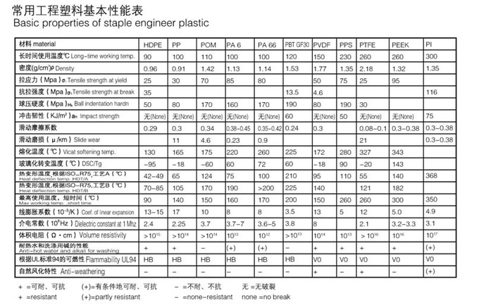 常用工程塑料基本性能表